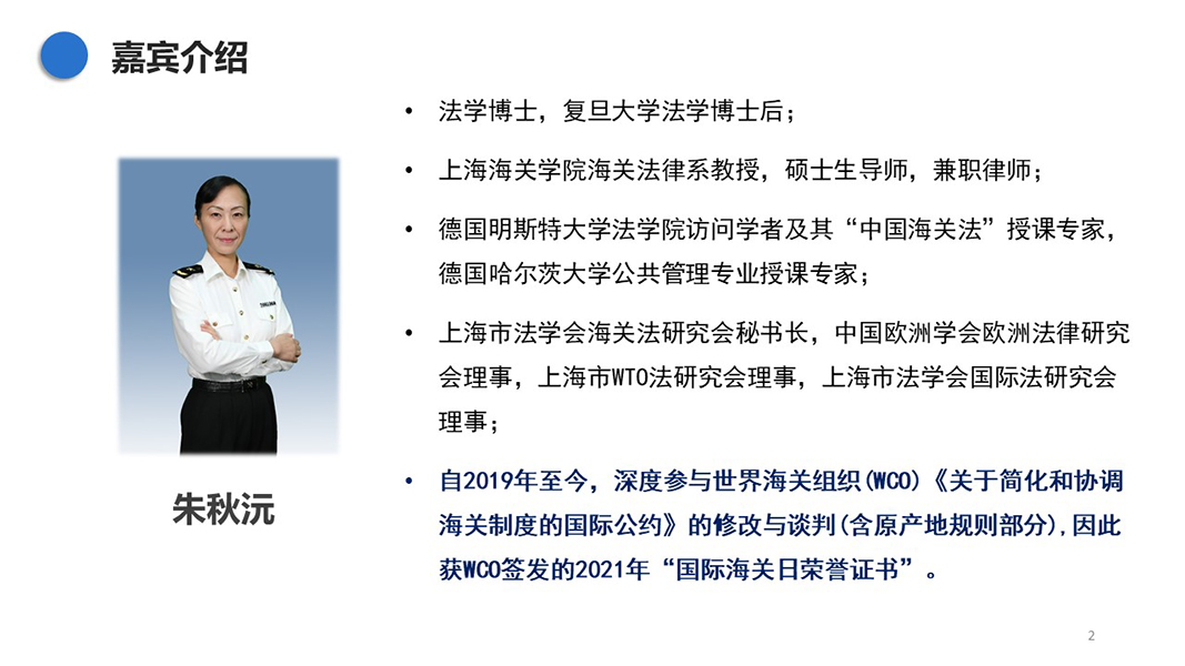 - 朱秋沅 | 上海海关学院法律系教授、三级关务监督