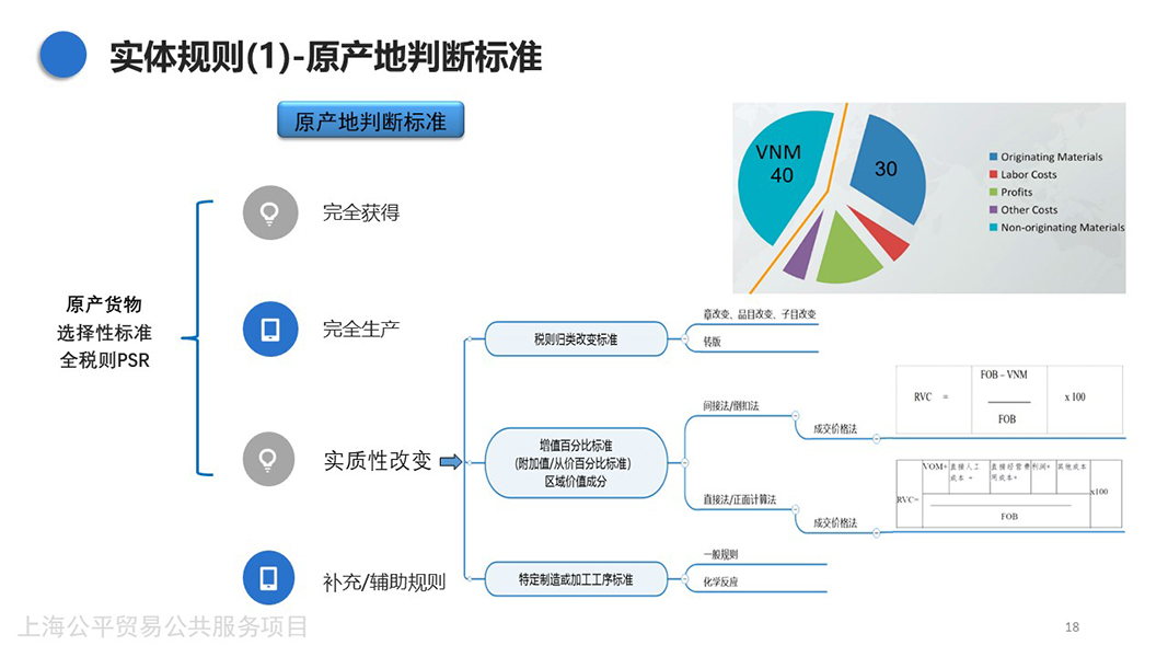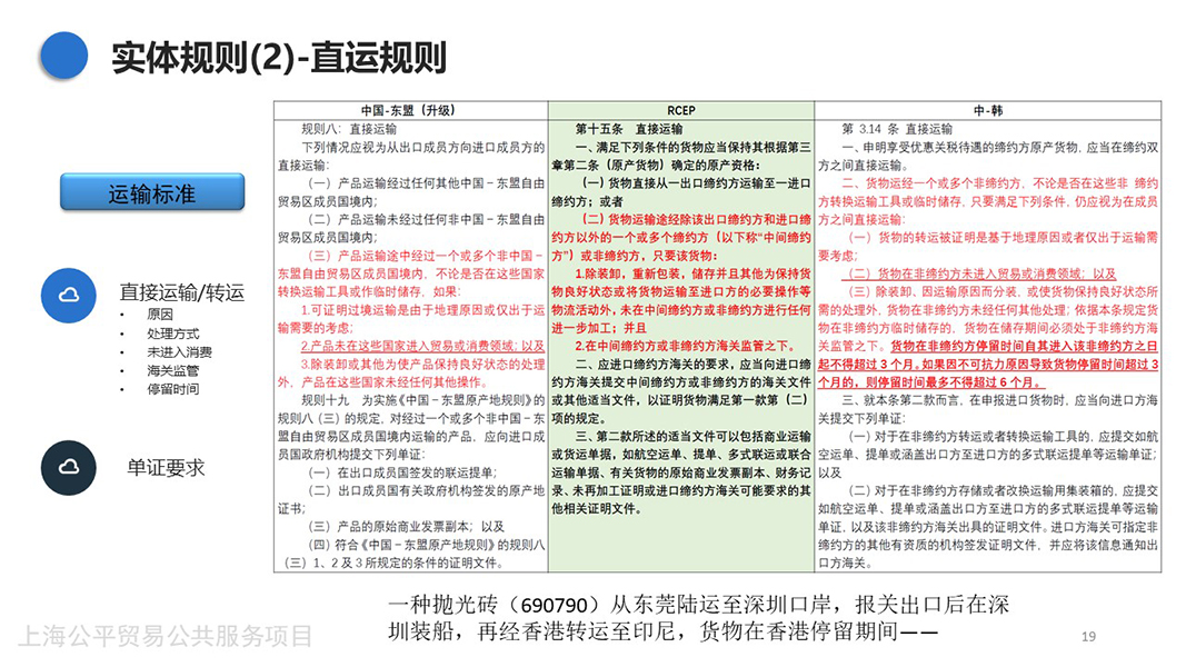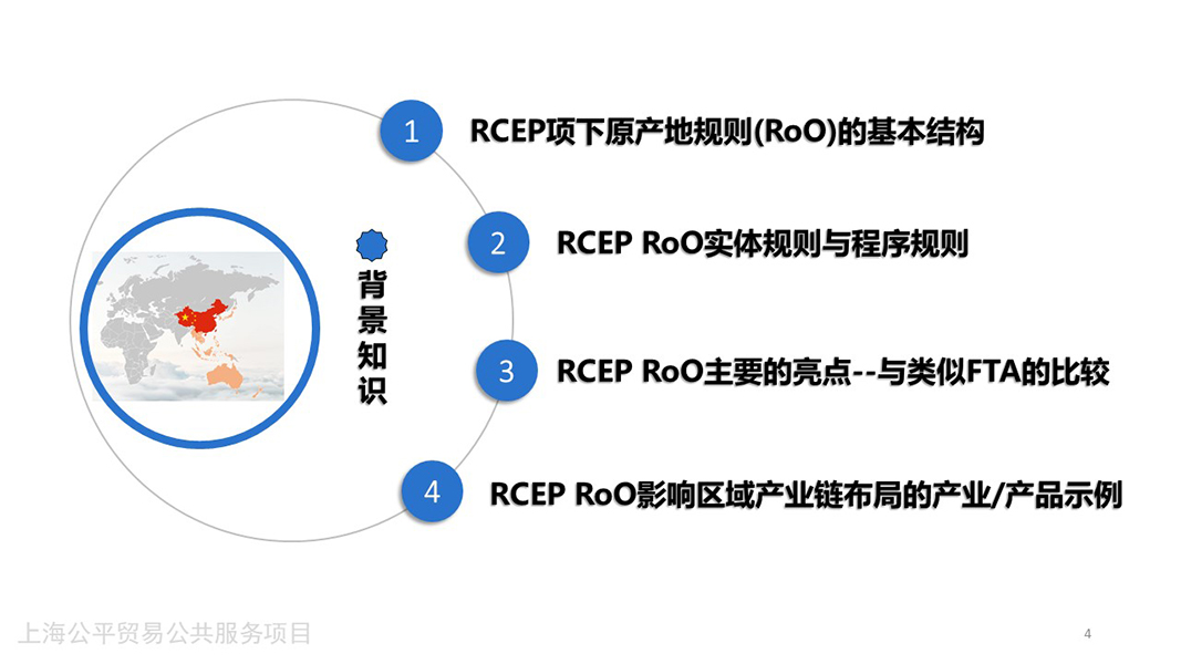 - 本讲分为上下两集,概览了RCEP项下原产地规则的基本结构,详解了其中的原产地判断标准及其补充规则、直运规则以及程序性规则,在与其他FTA的比较后提炼了RCEP原产地规则的亮点,并且结合关税减让承诺分析了RCEP对集成电路、调味香料、化妆品等产品的影响。